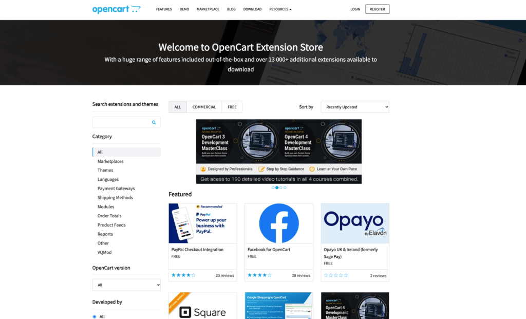 Estos módulos están disponibles para casi todas las necesidades de un propietario de comercio electrónico. Hay tanto gratuitos como de pago, y se pueden encontrar en recursos especializados en la comunidad Opencart.